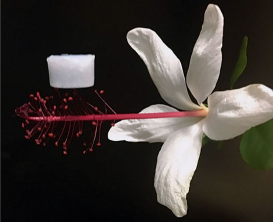 In the world of materials, aerogels are lightweights. Air accounts for almost all their volume, with a fine network of material holding the structures together. Ceramic aerogels are ideal components for heat shields on spacecraft because they are chemically stable and can maintain their structures in corrosive environments. But aerogels made from typical ceramic materials, such as silica, become fragile at high temperatures or when subjected to dramatic temperature swings. Now, researchers report a new ceramic aerogel that maintains its strength when heated above 1,400 °C in a vacuum or when it is repeatedly heated to 900 °C and rapidly cooled to –198 °C (Science 2019, DOI: 10.1126/science.aav7304). A team led by the University of California, Los Angeles’s Yu Huang and Xiangfeng Duan and the Harbin Institute of Technology’s Hui Li created the material using a previously reported method to build a graphene aerogel template that can be compressed without breaking or bulging, thanks to its architecture. They deposited a thin layer of hexagonal boron nitride (h-BN, the compound’s most stable crystalline form) on this template and oxidized the graphene away, leaving behind a network of h-BN with double-pane walls. This architecture helps the h-BN aerogel stay strong even after experiencing high temperatures. In addition to its heat tolerance, the h-BN aerogel is virtually weightless—it can be placed atop a flower’s delicate stamen without deforming or damaging it.